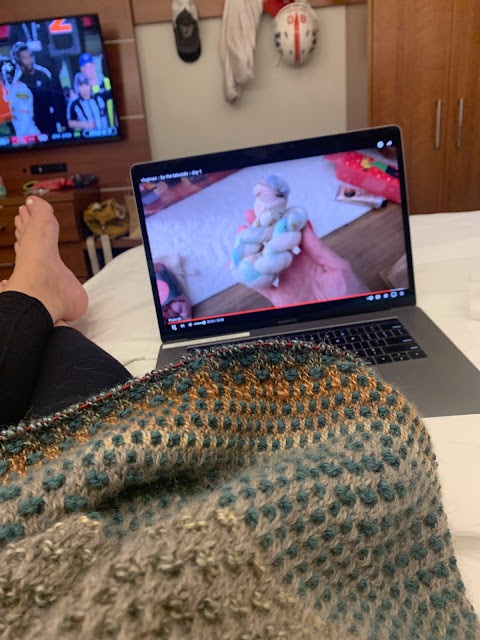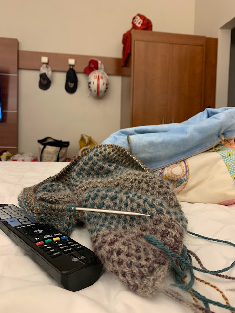 My youngest son and his AYF football team won their way to compete in the National Championships in Kissimmee, FL. I'm here with him now, knitting my way through the chaos of 22, 11 year old boys! He went to the Buccaneers game yesterday so I took myself to Disney Springs for lunch and then back to my hotel room where I watched Vlogmas videos. Now I want all the advents! I've never bought one before but maybe I will for next year. I watched Sandy by the Lakeside vlogmas videos for her first 5 days and I loved them. It's funny because I love watching videos by people that are super calm and organized. I am NOT either of those things but it inspires me to at least try!